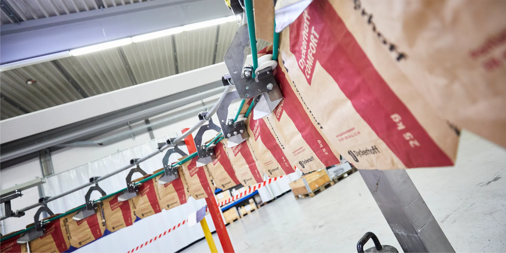 The single-bag feeder (4) at the end of the line shoots bags safely and reliably onto the packing machine’s filling spouts and adapts to their speed. This ensures a quality packing process by becoming operator independent. Using the RADIMAT-PATHFINDER®, you can fully maximize packing machine performance.
