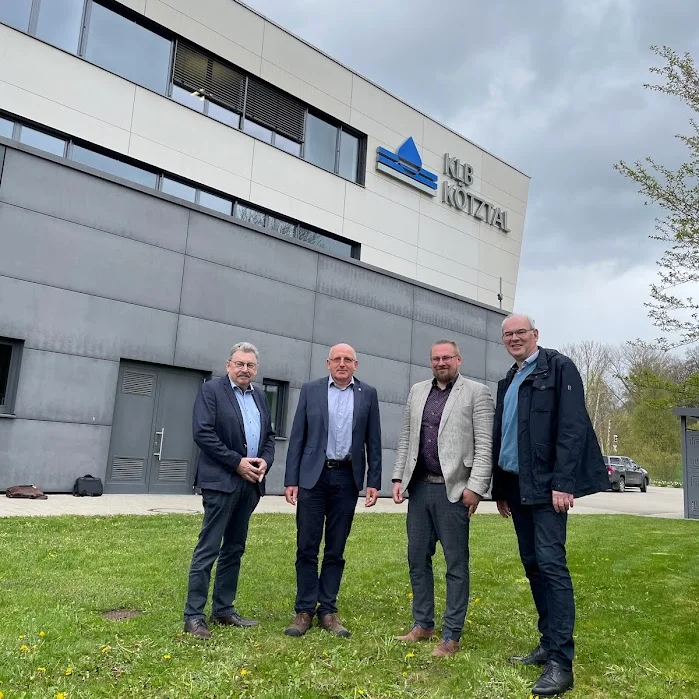 QUAT²RO besucht KLB Kötztal (v.l.): Arthur Kehrle (Geschäftsführer KLB), Thomas Krause (Geschäftsführer QUAT²RO), Dr. Julian Kehrle (Prokurist, Technischer Leiter KLB) und Wilhelm Reinkemeier (Leiter Technik QUAT²RO)