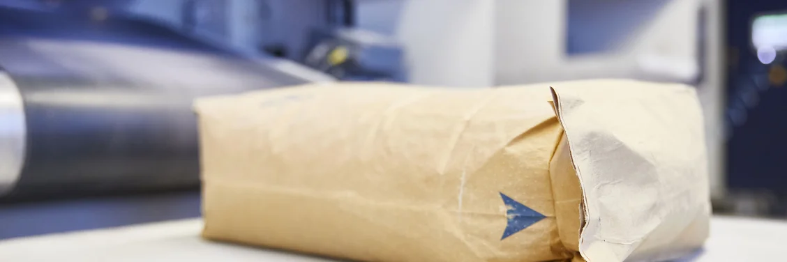 QUAT2RO® SEALcheck ends the packing line. A camera monitors bags leaving the packing line checks the sealed valves for loose product on the conveyor. When an issue with the seal is detected, the bag is diverted off the line to a separate area.