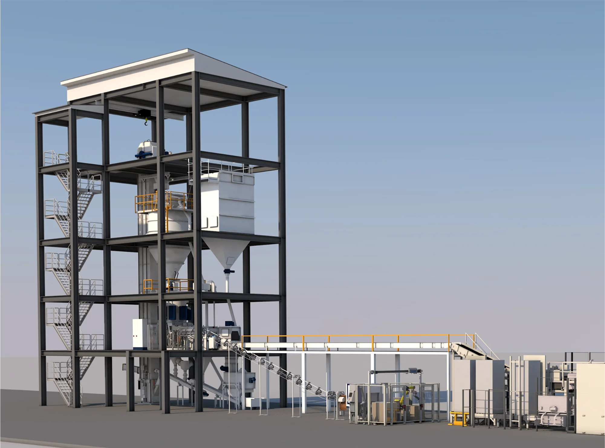 This system enhances flexibility, efficiency, and safety, while reducing dust exposure and maintenance needs. It’s ideal for packing plants with limited space, allowing you to benefit from both the ROTO-PACKER® and RADIMAT® without compromise.
