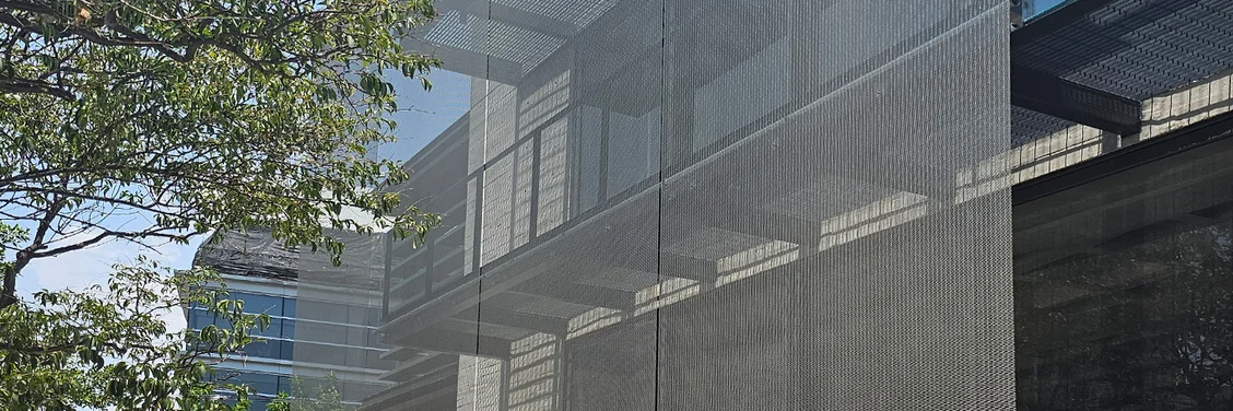 Grâce à l’interaction entre la structure tissée, la semi-transparence et la propriété réfléchissante de la surface en acier inoxydable de la toile EGLA-MONO 4991, la majeure partie des rayons du soleil est absorbée et réfléchie avant même de pénétrer à l’intérieur du bâtiment. Cela réduit l’apport direct de chaleur et aide à réguler la température intérieure, permettant ainsi une baisse de la consommation d’énergie pour la climatisation. Grâce à son pourcentage de vide de 54 %, la transparence du revêtement en toile offre tout de même une vue agréable sur l’extérieur. Ce jeu d’ombre et de transparence favorise la lumière naturelle du jour et rend l’utilisation d’éclairage artificiel moins nécessaire durant la journée.